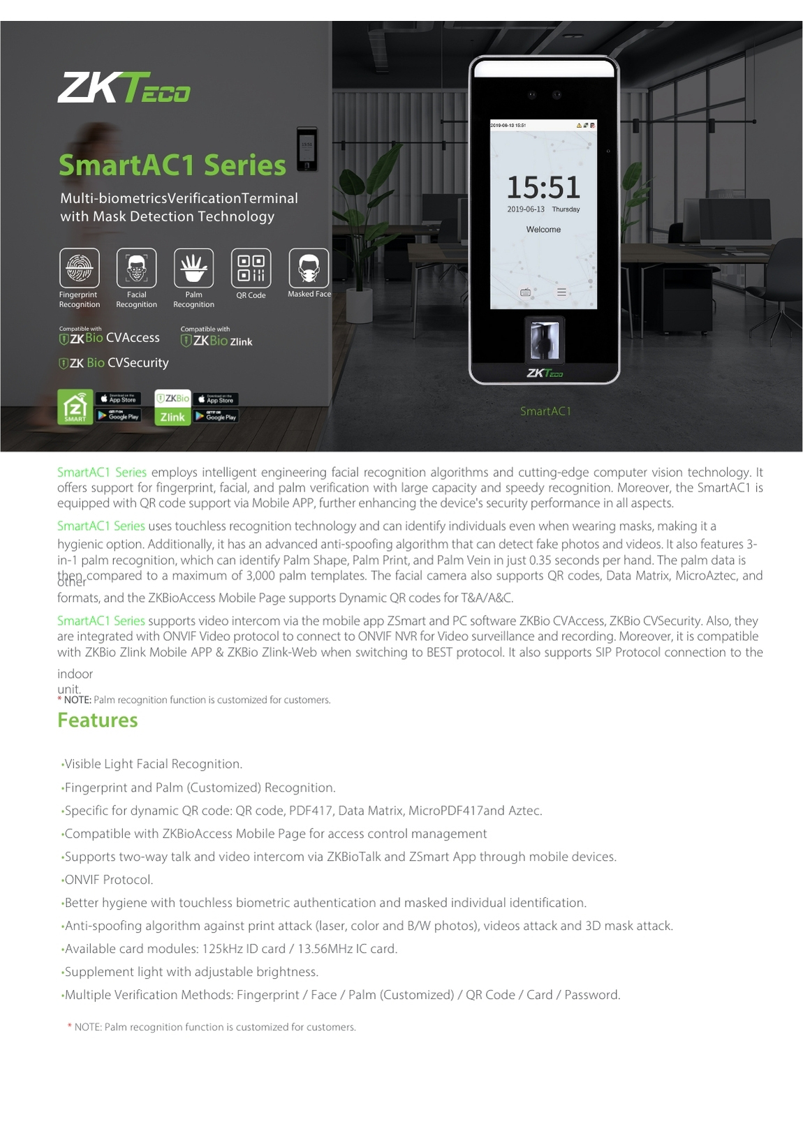 เครื่องสแกนใบหน้า ZK Smart AC1