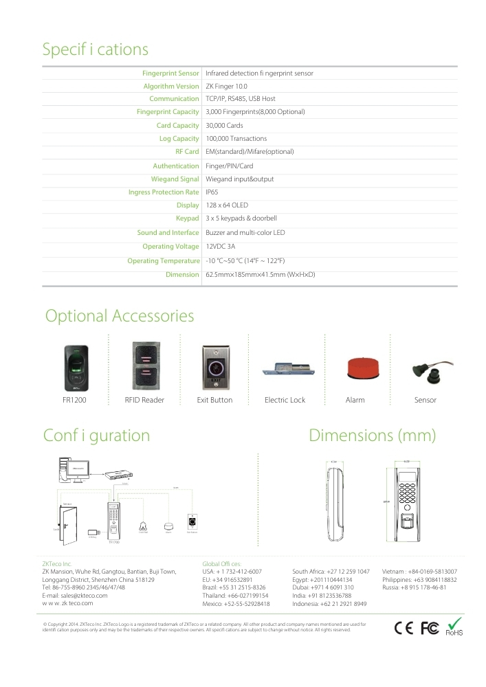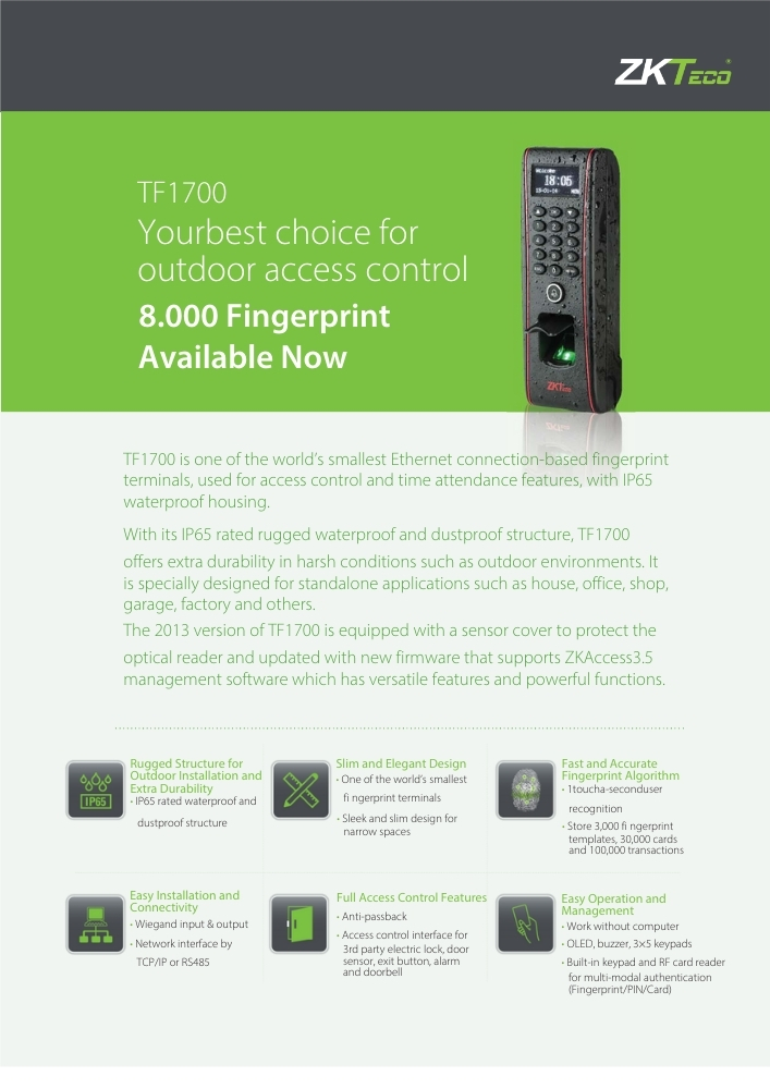 เครื่องสแกนลายนิ้วมือ ZK TF1700